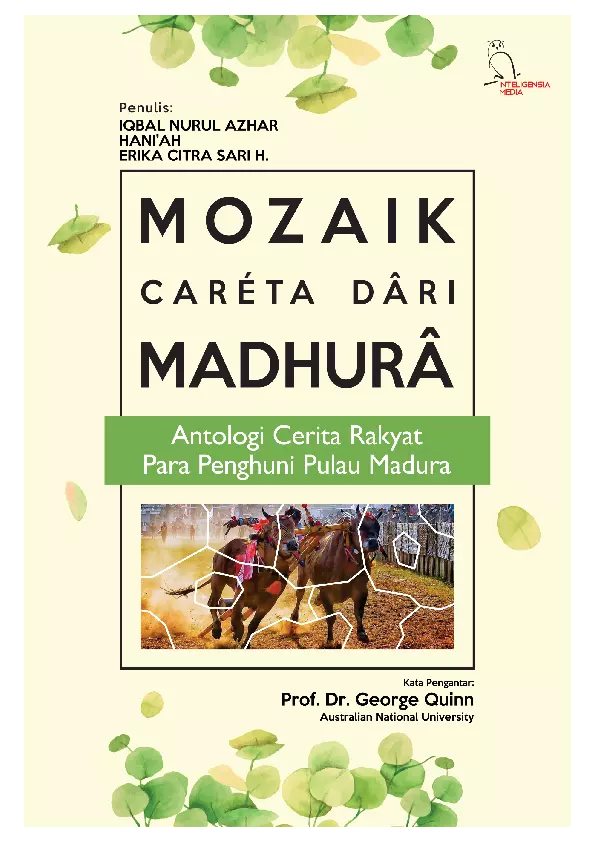 Sinopsis: Buku *Mozaik Caréta Dâri Madhurâ: Antologi Cerita Rakyat Para Penghuni Pulau Madura* merupakan kumpulan cerita rakyat yang menggambarkan kekayaan budaya dan sejarah masyarakat Madura. Dalam buku ini, terdapat berbagai cerita yang mengisahkan asal-usul masyarakat Madura, seperti kisah *Asal Muasal Kata Madura*, yang menjelaskan hubungan kekerabatan antara budaya Madura dan Jawa. Cerita tersebut menggambarkan lahirnya Raden Segoro, seorang tokoh legendaris yang menjadi cikal-bakal masyarakat Madura, yang lahir dari kandungan ibunya yang terdampar di daratan Madura. Selain itu, buku ini juga menghadirkan motif-motif yang memiliki makna simbolis, seperti motif “anak laut” yang menggambarkan asal-usul masyarakat Madura dari laut, dan motif kesucian perempuan sebagai simbol kestabilan sosial dan lembaga kemasyarakatan. Cerita-cerita dalam buku ini bukan hanya sekadar hiburan, tetapi juga merupakan warisan sastra lisan yang dapat menjadi sumber informasi sejarah dan budaya. Buku ini terdiri dari berbagai cerita yang dikumpulkan oleh para peneliti dan pengumpul cerita dari daerah Bangkalan-Sampang dan Pamekasan-Sumenep. Dengan adanya antologi ini, masyarakat dapat lebih memahami identitas budaya Madura dan perannya dalam konteks kehidupan sosial dan sejarah Indonesia.