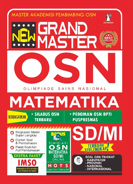 Buku New Grand Master OSN Matematika SD MI adalah buku terbaik yang kami hadirkan untuk mendampingi persiapan siswa siswa dalam menghadapi OSN Matematika SD MI Buku ini disusun berdasarkan Silabus OSN dan Pedoman OSN Balai Pengembangan Talenta Indonesia BPTI Puspresnas Buku ini berisi rangkuman materi OSN Matematika sesuai silabus serta paket soal pembahasan yang terdiri dari paket OSN Kabupaten Provinsi dan Nasional Dilengkapi pula dengan paket IMSO TIMSS dan paket Ujian Sekolah Matematika Soal soal dibahas dengan detail dilengkapi dengan TRIK Mudah Cepat Mengerjakan Soal