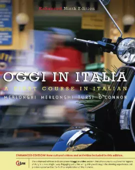 OGGI IN ITALIA is an introductory Italian program featuring a balanced four skills approach to language learning OGGI includes various perspectives of Italian culture ranging from its rich historical legacy to current changes affecting the country and culture This allows you to practice the basics of the language and develop oral communication skills in a variety of contexts while learning about contemporary Italian life and culture The enhanced edition provides additional cultural content through the brand new Viaggi in video sections which allow you to explore different regions of Italy Authentic Italian videos accessible on iLrn are accompanied by activities that guide you through the viewing experience and provide opportunities for classmate interaction through the iLrn Share It feature