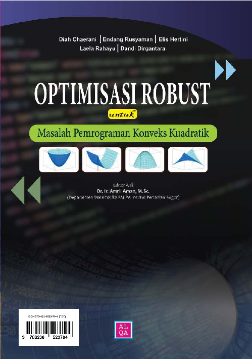 Bagian Pertama buku ini membahas mengenai Pemrograman Konveks Pemrograman Kon veks Kuadratik serta Masalah Optimisasi Robust Pada Bagian Kedua disajikan pembahasan mengenai penerapan Masalah Pemrograman Konveks Kuadratik pada kasus yang melibatkan data taktentu Diasumsikan data tak tentu ini berada dalam Himpunan Tak Tentu yang berupa kotak dan ellipsoidal Pemilihan Himpunan Tak Tentu Kotak dan Ellip soidal ini dilakukan untuk menjamin hasil reformulasi masalah optimisasi yang merupakan Model Optimisasi yang Computationally Tractable Telah dibuktikan oleh Bental dan Ne mirovskii 2 bahwa kelas masalah optimisasi yang dihasilkan pada penerapan Metodologi Robust Counterpart merupakan masalah optimisasi yang konveks sehingga dapat terjamin eksistensi solusi optimal global yang juga tahan akan gangguan Robust Optimal Global Solution Pada Bagian kedua buku ini dilengkapi pula dengan pembahasan penerapannya pada masalah industri khususnya dalam masalah Energy Saving Generation Dispacth dengan menggunakan pendekatan Teori Minimum Cost Flow