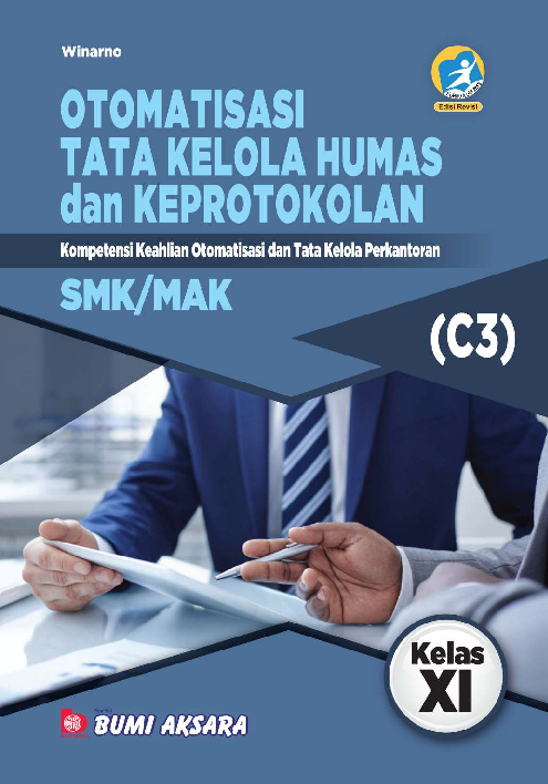 Buku ini ditulis sebagai salah satu sumber belajar siswa SMK MAK kelas XI untuk mempelajari dan memperdalam materi Otomatisasi Tata Kelola Humas dan Keprotokolan Selain itu buku ini ditulis secara umum dalam rangka ikut serta mencerdaskan bangsa Indonesia di era globalisasi dalam perkembangan ilmu pengetahuan dan teknologi Buku ini disusun berdasarkan Peraturan Direktur Jenderal Pendidikan Dasar dan Menengah Kementerian Pendidikan dan Kebudayaan Nomor 464 D D5 KR 2018 tentang Kompetensi Inti dan Kompetensi Dasar Mata Pelajaran Muatan Nasional A Muatan Kewilayahan B Dasar Bidang Keahlian C1 Dasar Program Keahlian C2 dan Kompetensi Keahlian C3 Anda dapat mempelajari buku ini sebelum dan sesudah dibahas oleh guru dan dapat mendiskusikannya dengan teman agar mendapatkan hasil belajar yang maksimal Setiap bab dalam buku ini dilengkapi dengan Kompetensi Dasar Kata Kunci Peta Konsep Tugas Info Rangkuman Refleksi Diri Soal Latihan dan Proyek Soal latihan diberikan beberapa jenis setelah akhir bab dan setiap akhir semester Pembahasan materi disajikan dengan bahasa yang lugas dan mudah kita pahami dari pembahasan secara umum ke pembahasan secara khusus Sebelum membaca rangkuman materi diharapkan Anda membuat rangkuman sendiri terlebih dahulu yang nantinya dibandingkan dengan rangkuman dalam buku Dengan demikian Anda dapat membandingkan pokok materi yang dianggap penting untuk dirangkum dan meningkatkan pemahaman Anda Pada akhir buku juga dilengkapi dengan Glosarium dan Indeks