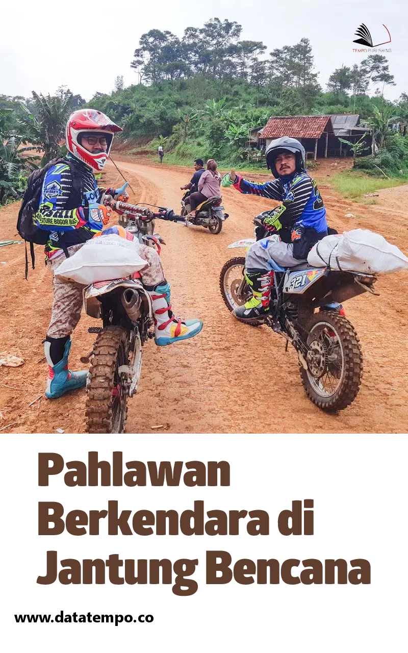 Anggota komunitas mobil off road dan sepeda motor trail bergerak menjadi relawan bencana Mereka berjibaku menyelamatkan korban mengangkut makanan membuat dapur umum hingga membuka akses jalan