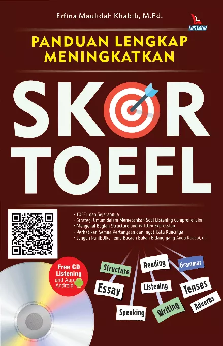Kemampuan berbahasa asing pada era digital merupakan hal yang sangat penting Segala bidang saat ini menuntut adanya penguasaan bahasa asing termasuk sektor pendidikan Jika dulu TOEFL hanya digunakan ketika melamar beasiswa ke luar negeri maka saat ini TOEFL juga digunakan sebagai salah satu syarat kelulusan atau syarat minimal untuk dapat melanjutkan ke jenjang pendidikan yang lebih tinggi Akan tetapi untuk dapat mencapai skor TOEFL tertentu menghafal atau belajar grammar mati matian juga bukan strategi yang efektif Sehingga pengenalan TOEFL dengan tips dan trik yang tepat sangat diperlukan Buku ini memuat cara cara mudah memahami soal soal yang sering keluar dalam tes TOEFL Setiap pembahasan suatu keterampilan bahasa Inggris selalu diikuti dengan latihan untuk membuat Anda terbiasa dengan setiap jenis keterampilan bahasa dan pengetahuan yang diujikan dalam tes TOEFL Inilah buku yang tepat mendampingi Anda meraih skor TOEFL sesuai target