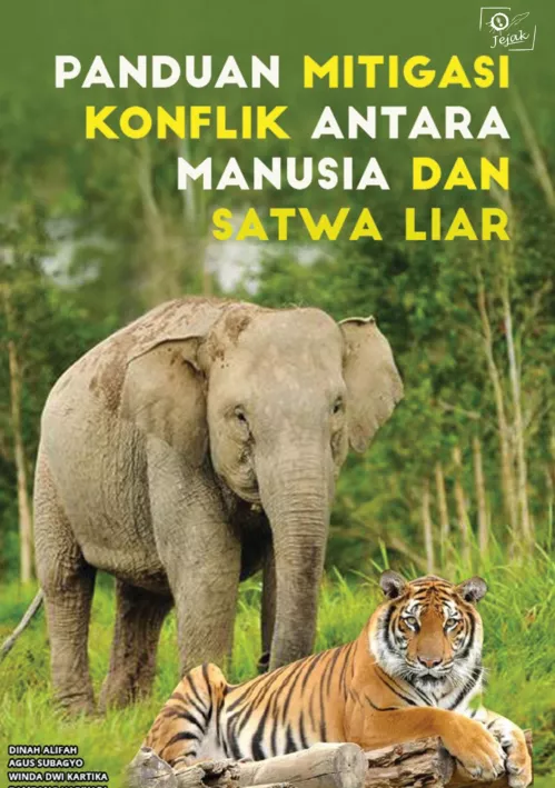 Konflik yang muncul antara manusia dan satwa liar merupakan sebuah permasalahan yang semakin relevan dalam dinamika ekologi modern Dalam era ketidakpastian ini ketika perubahan iklim dan ekspansi pemukiman semakin membatasi ruang hidup bagi satwa liar konflik semakin berkembang Habitat yang terus berkurang membuat potensi konflik antara manusia dan satwa liar semakin meningkat Masuknya gajah harimau orang utan beruang dan babi ke lahan garapan manusia yang tinggal di sekitar hutan merupakan akibat perebutan ruang hidup Mitigasi konflik antara manusia dan satwa liar dapat dilakukan dengan persiapan dan tindakan sebelum terjadinya insiden konflik atau sesudah konflik sehingga intensitasnya dapat dikurangi Mitigasi konflik penting dilakukan untuk mengurangi dan menyelaraskan kepentingan manusia tanpa mengorbankan kepentingan maupun keselamatan satwa liar salah satunya dengan mengembangkan buku panduan ini Referensi yang diacu untuk penyusunan panduan ini yaitu jurnal internasional jurnal nasional artikel final report dan wawancara dengan masyarakat mengenai mitigasi konflik antara manusia dan satwa liar Fokus buku panduan ini pada aspek tindakan tindakan yang dapat dilakukan oleh masyarakat khususnya di kawasan penyangga Taman Nasional untuk menghindari dan menangani konflik antara manusia dan satwa liar Tindakan yang dapat dilakukan sangat bervariatif mengingat beragamnya kondisi yang ada di lapangan hal ini bergantung pada kondisi lingkungan dan skenario terjadinya konflik yang ada pada daerah tersebut Buku ini diharapkan dapat menjadi panduan untuk mengambil tindakan pencegahan dan mengatasi konflik antara manusia dan satwa liar dengan tepat