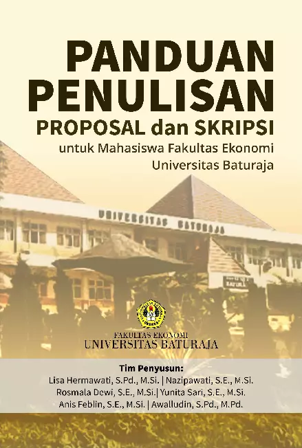 Proposal dan Skripsi adalah karya ilmiah yang ditulis oleh seorang mahasiswa S 1 sebagai bentuk laporan tugas akhir dan sebagai salah satu syarat kelulusan untuk mencapai gelar kesarjanaannya Tujuannya adalah agar mahasiswa mampu mengembangkan gagasan dan daya nalar wawasan pengalaman serta pengetahuan ilmiah dan praktis berdasarkan penelitian yang dilakukan Setiap mahasiswa di Fakultas Ekonomi Universitas Baturaja wajib membuat proposal penelitian sebelum melakukan penelitian Setelah proposal penelitian disetujui oleh Dosen Pembimbing mahasiswa harus melakukan kegiatan penelitian dan hasilnya disusun menjadi Skripsi Penulisan skripsi merupakan salah satu mekanisme untuk menyebarkan hasil penelitian sehingga dapat diketahui oleh orang lain