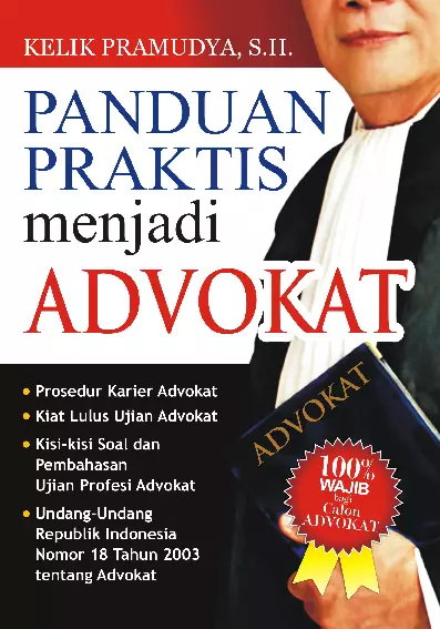 Sinopsis Buku: Buku *Panduan Praktis Menjadi Advokat* ini merupakan panduan lengkap dan terstruktur bagi para calon advokat yang ingin memahami langkah-langkah, prosedur, dan persyaratan untuk menjadi seorang advokat profesional di Indonesia. Buku ini disusun oleh Kelik Pramudya, S.H., dengan penyunting Bala Seda, dan diterbitkan oleh Penerbit Medpress Digital pada tahun 2013. Buku ini mencakup berbagai topik penting, mulai dari pendahuluan tentang profesi advokat, syarat dan alur menjadi advokat, hingga peran dan fungsi advokat dalam penegakan hukum. Selain itu, buku ini juga membahas kode etik advokat Indonesia, serta tantangan dan peluang profesi advokat di era globalisasi. Buku ini juga menjelaskan tentang pendidikan khusus untuk profesi advokat, ujian profesi advokat, serta materi yang diujikan dalam ujian tersebut. Di bagian belakang buku terdapat contoh soal dan pembahasan ujian profesi advokat, yang mencakup berbagai bidang hukum acara, seperti hukum acara perdata, pidana, peradilan agama, hubungan industrial, dan tata usaha negara. Selain itu, buku ini juga menyertakan undang-undang terkait advokat, seperti Undang-Undang No. 18 Tahun 2003 tentang Advokat, serta daftar pustaka dan lampiran yang mendukung pembelajaran dan pemahaman lebih lanjut tentang profesi advokat.