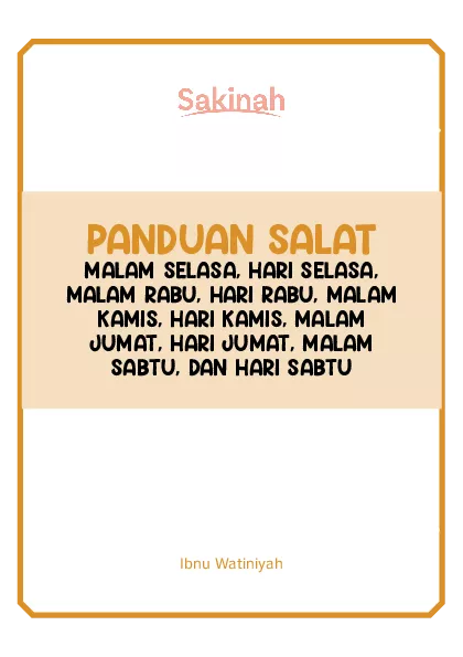PANDUAN SALAT MALAM SELASA, HARI SELASA, MALAM RABU, HARI RABU, MALAM KAMIS, HARI KAMIS, MALAM JUMAT, HARI JUMAT, MALAM SABTU, DAN HARI SABTU