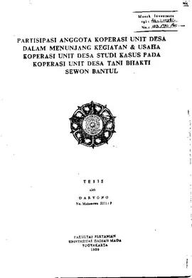 Parsitipasi Anggota Koperasi Unit Desa Dalam Menunjang Kegiatan & Usaha Koperasi Unit Desa Studi Kasus Pada Koperasi Unit Desa Tani Bhakti Sewon Bantul Daryono Fakultas Pertanian UGM Konten Lokal Konten Lokal 30993