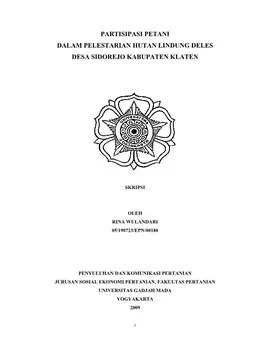 Partisipasi Petani Dalam Pelestarian Hutan Lindung Deles Desa Sidorejo Kabupaten Klaten Rina Wulandari Fakultas Pertanian UGM Konten Lokal Konten Lokal 31291