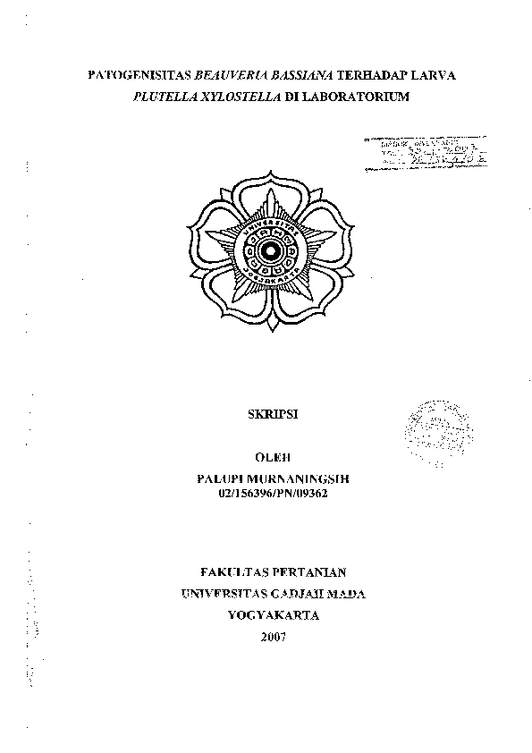 III BAHAN DAN METODE PENELITIAN A Waktu dan Tempat Penelitian Penelitian ini dilaksanakan mulai bulan Agustus sampai Desember 2006 di Laboratorium Entomologi Dasar dan Mikologi Jurusan Hama dan Penyakit Tumbuhan Fakultas Pertanian Universitas Gadjah Mada Yogyakarta 0 N B Prosedur Penelitian 1 Serangga Iji Larva P xylostella diperoleh dengan cara mengoleksi dari pertanaman kubis di Sleman Yogyakarta kemudian dibiakkan di Laboratorium Entomologi Dasar dengan pakan bibit caisin Pai Tsai CASANOVA hybrid Bibit caisin ditumbuhkan pada media kapas dalam botol plastik kecil yang berdiameter 3 cm dan tinggi 4 5 cm Untuk menumbuhkan caisin botol ditutup lakban hitam untuk mempercepat perkecambahan benih caisin dengan memanfaatkan efek etiolasi Kapas dalam botol dibasahi agar kelembapan medium terjaga Botol kemudian diletakkan dalam Growth Chamber Sanyo MLR 350 HT pada suhu 26 1C kelembapan relatif 68 dan fotoperiodisitas 16jam terang dan 8 jam gelap sampai benih berkecambah kemudian penutup botol dilepas Tanaman yang telah berumur satu minggu tinggi tanaman lebih kurang 2 5 cm siap digunakan sebagai pakan larva maupun tempat bertelur bagi imago Imago yang telah muncul dipindah ke dalam stoples yang telah diberi tanaman caisin sebagai tempat bertelur Gambar 1 Gambar 1 Tanaman caisin untuk pembiakan massal P xylostella a pembibitan awal b tanaman umur 1 minggu siap pakai sebagai pakan dan tempat peneluran c tempat peneluran imago 10