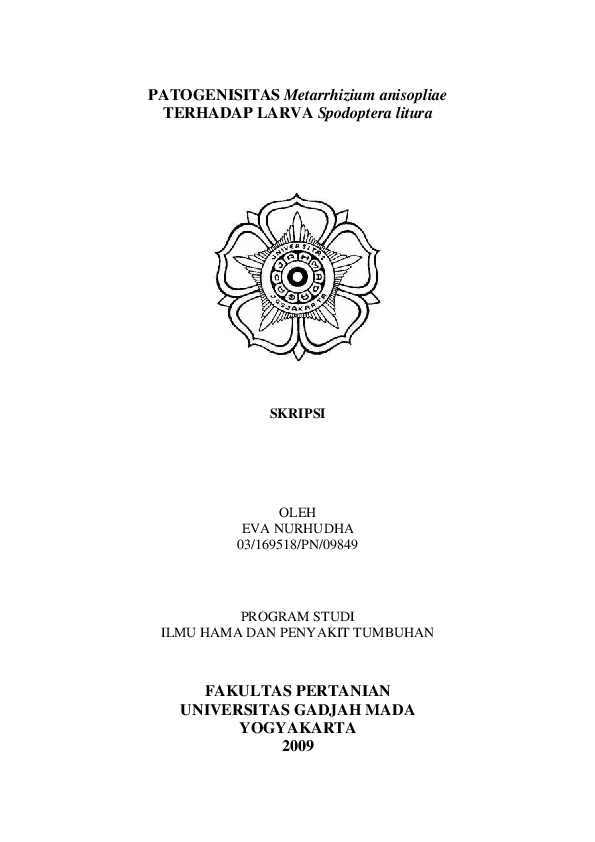 Patogenisitas Metarrhizium Anisopliae Terhadap Larva Spodoptera Litura Eva Nurhudha Fakultas Pertanian UGM Konten Lokal Konten Lokal 31209