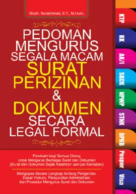 Sinopsis Buku: Buku ini merupakan panduan lengkap dan praktis dalam mengurus segala jenis surat perizinan dan dokumen hukum secara legal dan formal. Dengan disusun oleh Much. Nurachmad, S.T., M.Hum., buku ini memberikan penjelasan jelas mengenai berbagai dokumen penting seperti Akta Kelahiran, Surat Keterangan Tamu, Surat Pindah, Izin Lintas Batas Negara, Kartu Kuning (AK/I), Surat Keterangan Catatan Kepolisian (SKCK), NPWP, SIM, STNK, BPKB, Paspor, Visa, serta berbagai dokumen terkait kewarganegaraan dan pengadopsian anak. Selain itu, buku ini juga membahas dokumen izin usaha dan industri seperti Perseroan Terbatas (PT), Tanda Daftar Gudang (TDG), Surat Izin Tempat Usaha (SITU), Izin Gangguan (HO), Izin Keramaian, Izin Lokasi, serta berbagai izin teknis lainnya yang berkaitan dengan usaha dan industri. Buku ini sangat bermanfaat bagi masyarakat yang ingin memahami dan mengurus berbagai dokumen hukum secara sistematis, baik untuk keperluan pribadi maupun usaha. Dengan adanya panduan ini, pengurus perizinan dan dokumen dapat meminimalkan kesalahan dan mempercepat proses pengurusan.