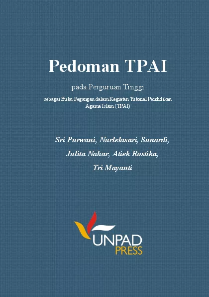 Buku Pedoman Tutorial Pendidikan Agama Islam TPAI ini merupakan upaya memberikan panduan kepada kegiatan tutorial PAI Buku ini dirancang berdasarkan capaian pembelajaran dan bahan kajian PAI pada Perguruan Tinggi yang mempunyai tujuan memberikan bekal dasar keahlian bagi mahasiswa untuk dapat memahami konsep Agama Islam dan implementasinya dalam kehidupan sehari hari Dengan adanya buku Pedoman ini diharapkan dapat meningkatkan wawasan mahasiswa terhadap tujuan pembelajaran PAI itu sendiri sehingga dapat mengimplementasikannya dalam kehidupan sehari hari
