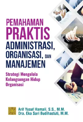 Administrasi Organisasi dan Manajemen merupakan istilah istilah yang melekat pada aktivitas bisnis sehari hari pada suatu organisasi atau perusahaan Seluruh aktivitas bisnis yang dijalankan dalam suatu organisasi harus dikelola dengan baik dan benar melalui penerapan teori teori ilmu administrasi organisasi dan manajemen baik pada organisasi pemerintah organisasi bisnis maupun organisasi nirlaba Buku ini memberikan pemahaman praktis mengenai istilah administrasi dan manajemen yang diterapkan dalam mengelola aktivitas bisnis pada suatu organisasi Keberhasilan suatu organisasi sangat ditentukan oleh kebijakan kebijakan administrasi dan manajemen yang dibuat dan diterapkan oleh pimpinan organisasi secara sistematis dan terpadu Kebijakan kebijakan administrasi dan manajemen tersebut akan lebih berdaya guna jika didukung oleh penyusunan dan penerapan strategi strategi lainnya di bidang perilaku organisasi sistem informasi manajemen motivasi karyawan peran dan fungsi kepemimpinan manajemen konflik komunikasi organisasi kerja sama kelompok sistem pengendalian mutu dan management by objective Semoga penerbitan buku ini bermanfaat dalam memberikan wawasan dan ilmu pengetahuan di bidang administrasi organisasi dan manajemen baik di kalangan mahasiswa para praktisi yang berkarier pada organisasi pemerintah organisasi bisnis dan organisasi nirlaba maupun masyarakat luas Semoga penerbitan buku ini juga dapat menjadi sedakah ilmu dan membawa barokah baik bagi penulis maupun penerbit serta bagi masyarakat luas yang membacanya Aamiin yaa robbal aalamiin