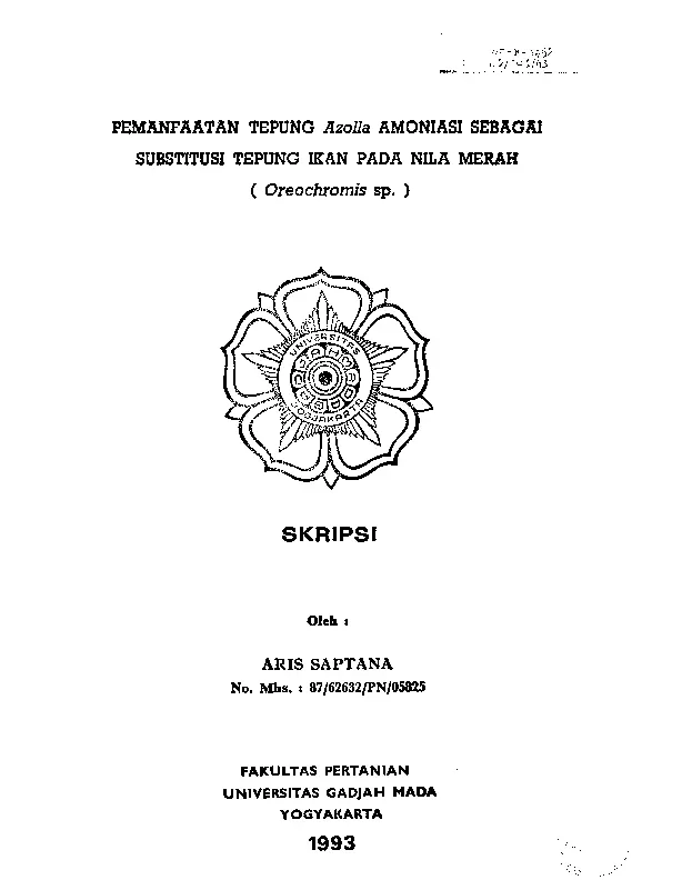 Pemanfaatan Tepung Azolla Amoniasi Sebagai Subtitusi Tepung Ikan Pada Nila Merah (Oreochromis Sp.) Aris Saptana Fakultas Pertanian UGM Konten Lokal Konten Lokal 31404