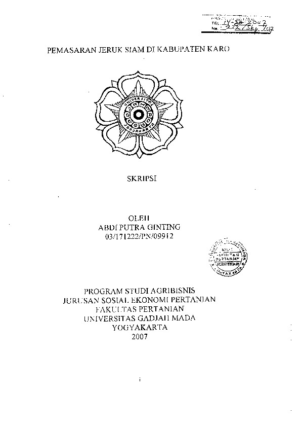 Pemasaran Jeruk Siam Di Kabupaten Karo Abdi Putra Ginting Fakultas Pertanian UGM Konten Lokal Konten Lokal 48831