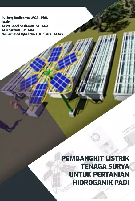 DAFTAR ISI KATA PENGANTAR iii DAFTAR ISI v Bab I PENDAHULUAN 1 1 1 Latar Belakang 1 1 2 Pertanian Hidroganik Padi Bengkel Mimpi 2 1 3 Program Pembangkit Listrik Tenaga Surya untuk Hidroganik Padi 5 Bab II Bab III Bab IV KAJIAN LITERATUR 2 1 Ketahanan Pangan 2 2 Kebutuhan Beras 2 3 Sentra Pertanian Perkotaan Urban Farming 2 4 Pertanian Hidroganik 2 5 Pembangkit Listrik Tenaga Surya PERHITUNGAN DAN DESAIN 3 1 Perhitungan 3 2 Sistem Jaringan Listrik PLTS untuk Hindroganik Padi 3 3 Desain Skematik Sistem Hidroganik 3 4 Desain Bracket Energi Surya 7 7 10 13 15 27 47 47 50 51 54 APLIKASI LISTRIK TENAGA SURYA UNTUK PERTANIAN HIDROGANIK PADI 57 4 1 Pembangunan Instalasi PLTS 57 4 2 Sosialisasi dan Koordinasi 58 v