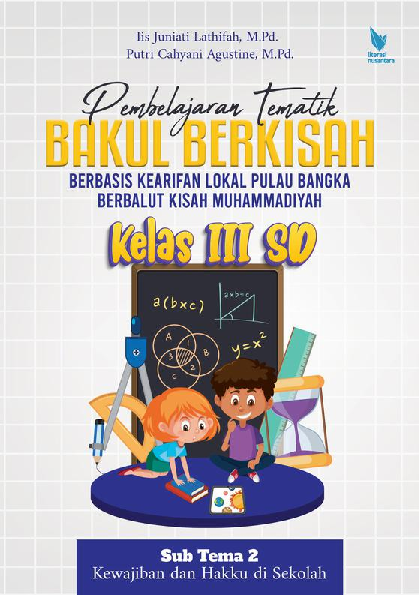 Sinopsis Buku "BAKUL BERKISAH": Buku ini merupakan buku pembelajaran tematik berbasis kearifan lokal Pulau Bangka yang dibalut dengan kisah-kisah Muhammadiyah. Buku ini ditujukan untuk siswa kelas III Sekolah Dasar, dengan materi yang disusun sesuai dengan indikator dan tujuan pembelajaran pada silabus tema 4, yaitu *Kewajiban dan Hakku di Sekolah*. Setiap materi pembelajaran dimulai dengan cerita yang mengangkat kisah Muhammadiyah atau kearifan lokal Pulau Bangka, sehingga memperkaya pengetahuan siswa sekaligus membangun jiwa sosial mereka. Melalui buku ini, siswa tidak hanya memperoleh pengetahuan akademik, tetapi juga semangat untuk hidup harmonis dan berdampingan dengan sesama, sebagaimana yang terlihat dalam kehidupan masyarakat Pulau Bangka. Buku ini juga mencakup beberapa kompetensi dasar di bidang Bahasa Indonesia, Matematika, SBdP, dan PJOK, serta dilengkapi dengan berbagai kegiatan yang menumbuhkan kreativitas, pemahaman, dan keterampilan siswa. Dengan pendekatan yang menarik dan kontekstual, buku ini dirancang untuk memudahkan peserta didik dalam mengikuti kegiatan belajar tematik secara menyeluruh dan bermakna.