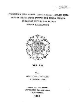 Pembenihan Nila Merah (Oreochromis Sp.) Dalam Hapa Dengan Nisbah Induk Jantan Dan Betina Beberapa Di Habitat Litoral Dan Pelagis Waduk Kedungombo Susilo Budi Priyonoi Fakultas Pertanian UGM Konten Lokal Konten Lokal 31417