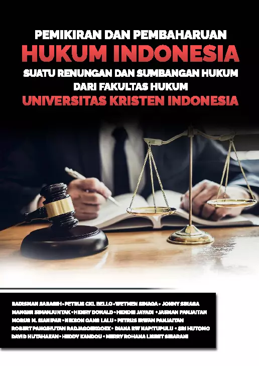 Sinopsis Buku: Buku *Pemikiran dan Pembaharuan Hukum Indonesia* ini merupakan kumpulan karya ilmiah yang menggambarkan upaya-upaya pemikiran dan pembaharuan hukum di Indonesia, yang disusun oleh para penulis dari Fakultas Hukum Universitas Kristen Indonesia. Buku ini mencakup berbagai topik penting dalam bidang hukum, seperti peran notaris dalam membuat perjanjian, peningkatan lifting migas nasional melalui pembaharuan proses kontrak pengeboran sumur pengembangan, penerapan sistem pembuktian terbalik dalam tindak pidana korupsi, perlindungan hukum bagi pekerja perjanjian kerja tertentu, serta peran hukum dalam menangani invasi militer Rusia ke Ukraina dari perspektif hukum humaniter internasional. Selain itu, buku ini juga membahas pembaharuan hukum acara perdata menuju unifikasi dan kodifikasi hukum, pemberian kompensasi kepada anak korban kekerasan seksual, dan hubungan antara presidensialisme dalam pembentukan undang-undang berdasarkan UUD 1945. Buku ini memberikan kontribusi penting dalam upaya memperbarui sistem hukum Indonesia agar lebih relevan dan mampu mengakomodasi kebutuhan masyarakat dalam konteks yang terus berkembang. Dengan berbagai topik yang relevan dan up-to-date, buku ini menjadi referensi penting bagi para akademisi, praktisi hukum, serta semua pihak yang tertarik pada pembaharuan hukum di Indonesia. Buku ini juga mencerminkan komitmen para penulis untuk terus mengembangkan pemikiran hukum yang berorientasi pada keadilan, kepastian hukum, dan manfaat nyata bagi masyarakat.