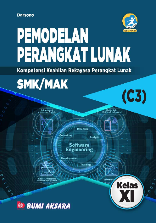 Sinopsis Buku: Buku ini merupakan sumber belajar yang dirancang khusus untuk siswa SMK/MAK kelas XI dalam mempelajari mata pelajaran *Pemodelan Perangkat Lunak*. Buku ini berisi materi yang disusun berdasarkan Peraturan Direktur Jenderal Pendidikan Dasar dan Menengah Kementerian Pendidikan dan Kebudayaan Nomor 464/D.D5/KR/2018, yang mengatur Kompetensi Inti dan Kompetensi Dasar Mata Pelajaran Muatan Nasional, Muatan Kewilayahan, Dasar Bidang Keahlian, Dasar Program Keahlian, dan Kompetensi Keahlian. Materi dalam buku ini mencakup konsep pemodelan berorientasi objek, yang merupakan dasar dalam pengembangan perangkat lunak. Dalam bab-babnya, siswa akan mempelajari berbagai aspek seperti ciri-ciri objek, metode konseptual, alur kerja sistem, relasi antarkelas, interaksi antarobjek, serta pembuatan model sistem berorientasi objek menggunakan perangkat lunak. Selain itu, buku ini juga mencakup soal latihan untuk membantu siswa menguasai materi yang telah dipelajari. Buku ini ditujukan untuk meningkatkan kemampuan berpikir kritis, analitis, dan kreatif siswa dalam bidang Rekayasa Perangkat Lunak, serta mendukung pembelajaran yang lebih efektif dan efisien. Dengan memahami konsep pemodelan berorientasi objek, siswa akan siap menghadapi tantangan di dunia teknologi informasi dan pengembangan perangkat lunak di masa depan.