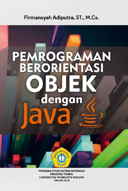 Sinopsis Buku: Buku ini membawa pembaca memasuki dunia pemrograman berorientasi objek (PBO) dengan menggunakan bahasa pemrograman Java sebagai media utama. Buku ini dirancang sebagai pengantar bagi mahasiswa atau pembelajar pemula yang ingin memahami konsep dasar PBO serta sintaks dasar bahasa Java. Buku ini mencakup berbagai topik yang esensial, seperti tipe data primitif, variabel, konstanta, ekspresi, operator, dan notasi pendek, yang merupakan fondasi penting dalam pemrograman. Selanjutnya, buku ini menjelaskan konsep dasar berorientasi objek, termasuk kelas, objek, dan struktur program Java. Di bagian selanjutnya, buku ini juga menjelaskan konsep seleksi kondisi (percabangan) seperti pernyataan *if*, *if-else*, dan multi-seleksi, serta tipe data boolean yang menjadi dasar pengambilan keputusan dalam program. Seluruh materi disajikan dengan jelas, mendukung pemahaman konseptual serta penerapan praktis dalam pengembangan program. Buku ini dilengkapi dengan latihan dan rangkuman untuk memperkuat pemahaman pembaca. Dengan struktur yang terorganisir dan penjelasan yang mudah dipahami, buku ini menjadi panduan yang tepat untuk memulai perjalanan belajar pemrograman berorientasi objek dengan Java.