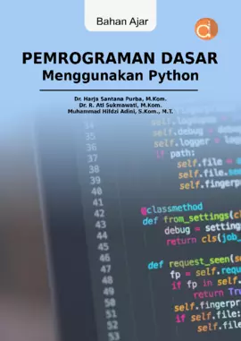 Sinopsis Buku: Buku ini membahas dasar-dasar pemrograman komputer menggunakan bahasa pemrograman Python. Buku ini dirancang untuk memudahkan mahasiswa dalam mempelajari konsep-konsep pemrograman dasar, mulai dari pengenalan algoritma, struktur kontrol seperti percabangan dan pengulangan, hingga penerapan praktis dalam pembuatan program. Buku ini juga mencakup panduan instalasi Python, penggunaan komentar, input data, serta modul seperti *math* dan *fractions* yang berguna dalam pemecahan masalah matematis. Buku ini sangat cocok untuk digunakan sebagai bahan ajar dalam mata kuliah Pemrograman Dasar di Program Studi Pendidikan Ilmu Komputer dan Komputer Pemrograman di Program Studi Pendidikan Matematika FKIP Universitas Lambung Mangkurat. Dengan bahasa yang jelas dan struktur yang terorganisir, buku ini bertujuan untuk meningkatkan pemahaman dan kemampuan mahasiswa dalam pemrograman dasar.
