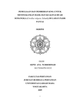 Pemulsaan Dan Pemberian Kno3 Untuk Meningkatkan Hasil Dan Kualitas Buah Semangka (Citrullus Vulgaris, Schard.) Di Lahan Pasir Pantai Septi Ana Nurrohmah Fakultas Pertanian UGM Konten Lokal Konten Lokal 31300