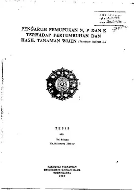 Pen&Aruh Pemupukan N, P Dan K Terhadap Pertumbuhan Dan Hasil Tanaman Wijen (Sesawum Indicum I.) Tri Rahayu Fakultas Pertanian UGM Konten Lokal Konten Lokal 31339