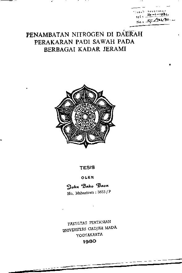Penambatan Nitrogen Di Daerah Perakaran Padi Sawah Pada Berbagai Kadar Jerami John Bako Baon Fakultas Pertanian UGM Konten Lokal Konten Lokal 31002