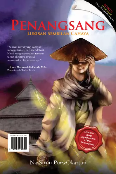 Sinopsis: Sebuah novel yang mengguncang dan mendobrak sejarah, *Lukisan Sembilan Cahaya* menghadirkan kisah Penangsang—seorang tokoh sejarah yang misterius dan penuh teka-teki. Dalam novel ini, kisah Penangsang tidak hanya diungkap lebih dalam, tetapi juga ditemukan dalam konteks sejarah yang lebih luas, terutama dalam perjalanan kekuasaan Kesultanan Demak hingga ke Pajang. Buku ini menyoroti peristiwa kematian Penangsang, yang menjadi misteri sejarah yang hingga kini masih memerlukan penelitian dan pengkajian mendalam. Sebagian masyarakat di Jawa meyakini bahwa Penangs yang mati terbunuh di Jipang, sementara sebagian lain, khususnya di Palembang, meyakini bahwa Penangsang selamat dari pembunuhan dan hijrah ke sana. Novel ini menggambarkan kehidupan Penangsang setelah dianggap selamat, menjelajahi perjalanan, kepercayaan, dan perjuangan seorang tokoh yang menjadi simbol kekuatan dan kebijaksanaan. Dengan gaya penulisan yang mendalam dan penuh makna, *Lukisan Sembilan Cahaya* menawarkan pembaca sebuah perjalanan sejarah yang penuh warna, penuh pertanyaan, dan penuh kebenaran.