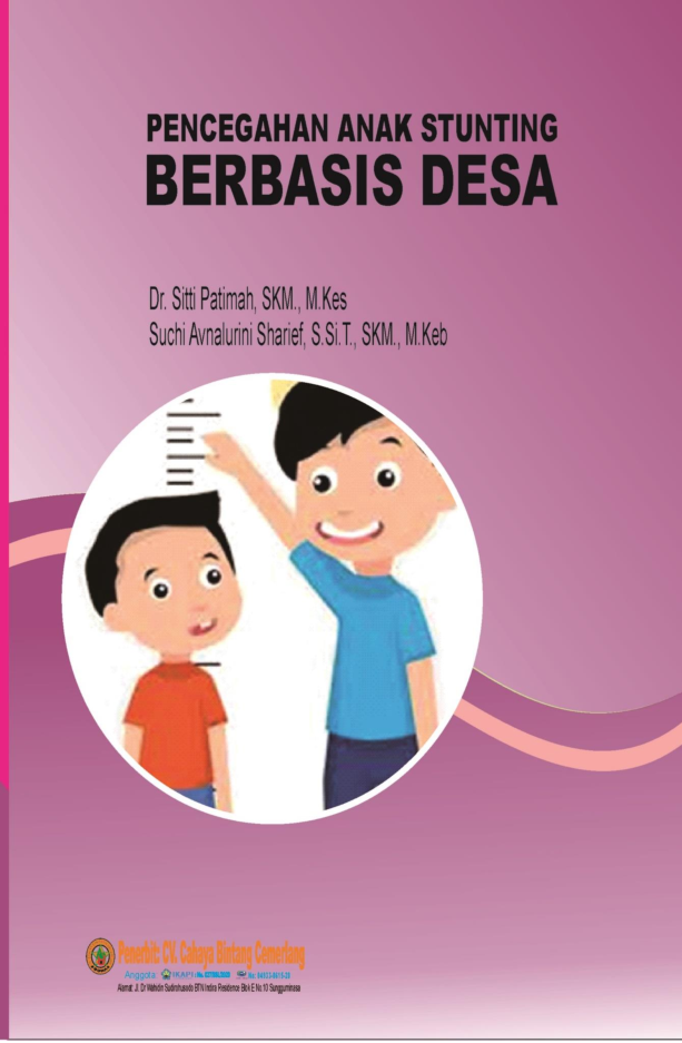 Buku yang cukup praktis ini diperuntukan untuk para calon ibu remaja putri dan pasangan usia subur serta ibu hamil menyusui beserta para tim pendamping keluarga bidan tim penggerak PKK dan kader KB dan kepala desa khususnya di lokasi pengabdian kami untuk dapat dijadikan sebagai bahan bacaan dalam mengemban tugas setiap pribadi untuk mencegah anak stunting terjadi di desa karena secara faktual data secara nasional menunjukan bahwa anak balita yang mengalami stunting lebih banyak ditemukan di pedesaan dibandingkan di perkotaan Oleh karena itu pencegahan stunting secara wilayah harus dimulai dari desa