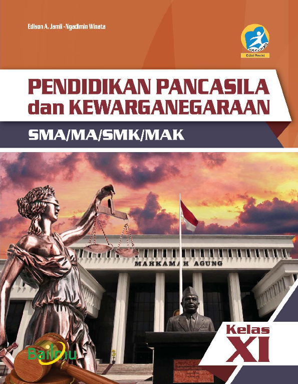 Sinopsis Buku: Buku ini merupakan panduan komprehensif dalam mempelajari mata pelajaran Pendidikan Pancasila dan Kewarganegaraan untuk siswa SMA/MA/SMK/MAK kelas XI. Buku ini disusun berdasarkan Peraturan Menteri Pendidikan dan Kebudayaan Republik Indonesia Nomor 24 Tahun 2016 tentang Kompetensi Inti dan Kompetensi Dasar Pelajaran pada Kurikulum 2013, yang menekankan pendidikan pada aspek sikap, pengetahuan, dan keterampilan. Materi yang disajikan mencakup pengetahuan, keterampilan, dan sikap yang berkembang dari nilai-nilai Pancasila dan Kewarganegaraan dalam kehidupan sehari-hari. Buku ini dirancang untuk membentuk warga negara yang bertanggung jawab, kritis, rasional, dan kreatif dalam menanggapi isu-isu terkait bangsa dan negara. Buku ini meliputi Kompetensi Inti dan Kompetensi Dasar yang terdiri dari tiga aspek utama: 1. Aspek Sikap (Attitude): Termasuk sikap menghargai hak asasi manusia, bersikap peduli, disiplin, tanggung jawab, santun, responsif, dan proaktif dalam berdemokrasi Pancasila. 2. Aspek Pengetahuan (Knowledge): Termasuk pemahaman tentang nilai-nilai Ketuhanan, sistem hukum dan peradilan, peran Indonesia dalam perdamaian dunia, serta pentingnya Wawasan Nusantara. 3. Aspek Keterampilan (Skill): Termasuk kemampuan mengolah, menalar, dan menyaji informasi dalam ranah konkret dan abstrak terkait pengembangan pengetahuan dan keterampilan secara mandiri. Dengan mempelajari buku ini, siswa diharapkan mampu memahami konsep Pancasila dan Kewarganegaraan secara mendalam, serta menerapkannya dalam kehidupan sehari-hari secara aktif dan bertanggung jawab. Buku ini juga dirancang untuk membangun kesadaran akan pentingnya nilai-nilai Pancasila dalam mewujudkan persatuan dan kesatuan bangsa serta menerapkan prinsip Bhinneka Tunggal Ika dalam kehidupan bermasyarakat, berbangsa, dan bernegara.