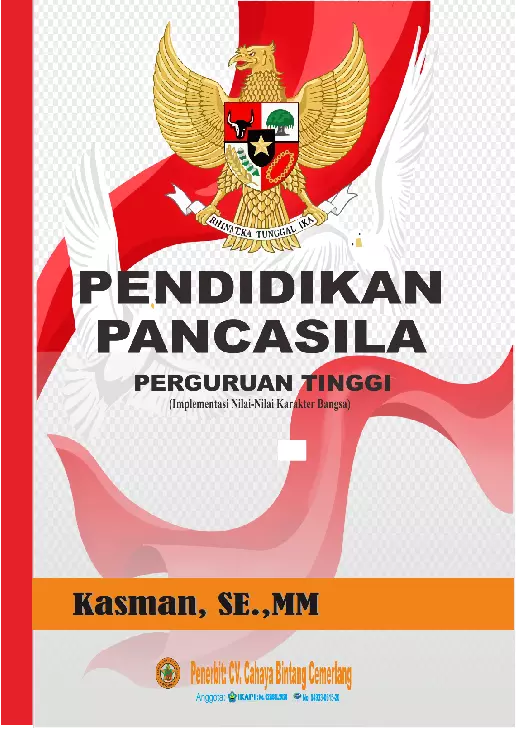 Sinopsis Buku Ajar Pendidikan Pancasila Tingkat Perguruan Tinggi Buku ini merupakan panduan komprehensif dalam mempelajari Pendidikan Pancasila di tingkat perguruan tinggi, yang dirancang untuk memenuhi kebutuhan akademik dan pendidikan nasional. Buku ini berisi berbagai bab yang membahas landasan pendidikan Pancasila secara historis, kultural, yuridis, dan filosofis, serta tujuan pendidikan Pancasila dalam konteks pembentukan karakter dan kepribadian mahasiswa. Bab I membahas landasan pendidikan Pancasila dalam kurikulum nasional, termasuk proses pembentukan bangsa Indonesia sejak zaman kerajaan kuno hingga masa penjajahan dan perjuangan kemerdekaan. Bab II menjelaskan tentang negara kesatuan Republik Indonesia sebagai bentuk negara, termasuk sejarah Indonesia sebelum dan sesudah kemerdekaan, serta peran Pancasila sebagai sumber paradigma dan ideologi filsafat dalam kehidupan berbangsa dan bernegara. Buku ini juga menyoroti makna lambang negara, semboyan Bhinneka Tunggal Ika, serta keanekaragaman bangsa Indonesia sebagai salah satu nilai-nilai yang mendasari kehidupan berbangsa dan bernegara. Buku ini sangat relevan sebagai acuan bagi dosen pengampu dalam merancang mata kuliah Pendidikan Pancasila, serta dapat menjadi sumber belajar yang mendalam bagi mahasiswa dalam memahami pentingnya Pancasila dalam kehidupan bermasyarakat dan bernegara. Dengan struktur yang jelas dan konten yang terarah, buku ini memberikan pemahaman mendalam tentang nilai-nilai Pancasila sebagai landasan ideologi bangsa Indonesia yang relevan hingga saat ini.