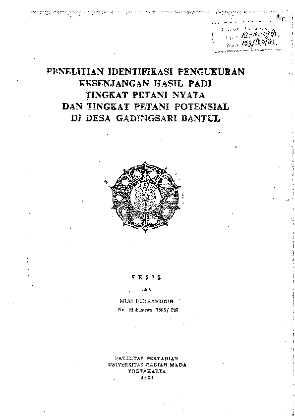 Penelitian Identifikasi Pengukuran Kesenjangan Hasil Padi Tingkat Petani Nyata Dan Tingkat Petani Potensial Di Desa Gadingsari Bantul Muh Buthanudin Fakultas Pertanian UGM Konten Lokal Konten Lokal 48228