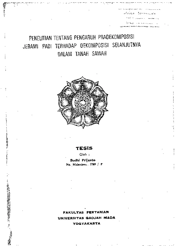 Penelitian Tentang Pengaruh Pradekomposisi Jerami Padi Terhadap Dekomposisi Selanjutnya Dalam Tanah Sawah Budhi Prijanto Fakultas Pertanian UGM Konten Lokal Konten Lokal 31052