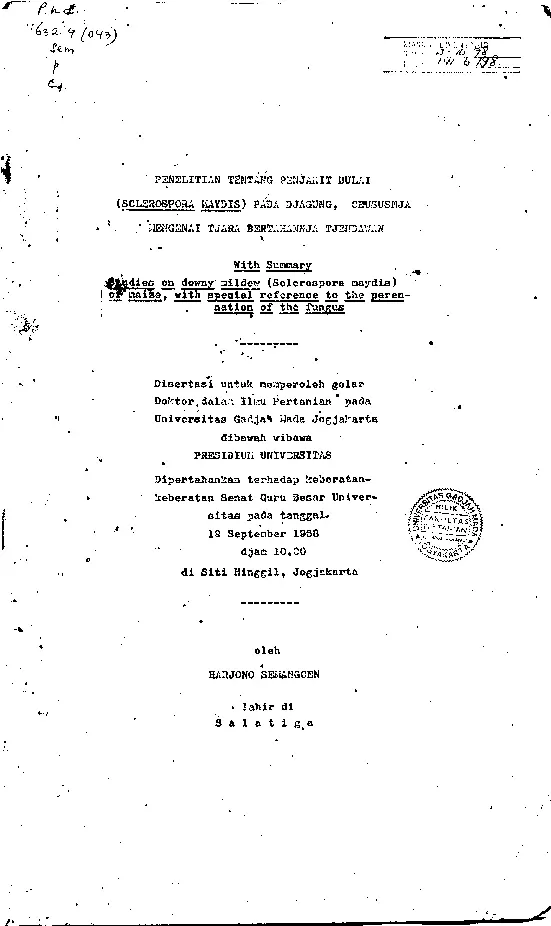 Penelitian Tentang Penjakit Bulai (Sclerospora Maydis) Pada Djagung, Chususnja Mengenai Tjara Bertahannja Tjedawan Harjono Semangoen Fakultas Pertanian UGM Konten Lokal Konten Lokal 48313