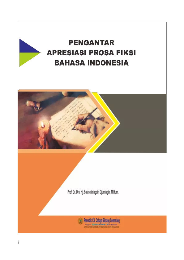 Apresiasi Prosa Fiksi merupakan kegiatan memahami mengkaji secara mendalam tetang Prosa Fiksi Oleh karena itu pembelajarannya harus secara runtut dan kontinyu untuk mengamatinya Pembelajaran itu terselenggara dengan efektif bila sejak awal dirancang dengan baik dengan mensinergikan berbagai komponen yaitu guru siswa media materi dan kondisi Materi prosa fiksi tidak hanya diamati melalui buku teks tetapi juga melalui online atau internet Tahap tahap apresiasi yaitu memami mengkaji mengkreasi mencipta mendesimenasikan Pada buku Pengantar Apresiasi Prosa Fiksi ini baru pada tahap memahami prosa fiksi