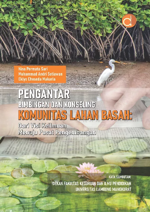 Buku yang berjudul Pengantar Bimbingan dan Konseling Komunitas Lahan Basah Dari Visi Keilmuan Menuju Pusat Pengembangan merupakan suatu karya telaah teoretis yang berangkat dari kesadaran diperlukannya suatu buku referensi yang mewakilkan visi keilmuan Program Studi Bimbingan dan Konseling Universitas Lambung Mangkurat yang diharapkan dapat menjadi program studi terkemuka di Indonesia dalam mengembangkan keilmuan bimbingan dan konseling komunitas lingkungan lahan basah berbasis merdeka belajar Diharapkan juga buku ini menjadi referensi yang berkontribusi memberikan gambaran sentris bagaimana bentuk bimbingan dan konseling lahan basah sebagai kekhasan program studi Penyusunan buku ini juga dapat dikatakan sebagai langkah terawal yang tentunya akan banyak kekurangan yang ditemukan di sana sini Pada konteks ini buku yang sampai ke tangan Anda mengandung topik telaah yang menyangkut tentang karakteristik konseli komunitas lingkungan lahan basah kompetensi multikultural yang harus dipunyai guru bimbingan dan konseling strategi pendekatan konten layanan dan substansi program dan indikator pengembangan kajian bimbingan dan konseling komunitas lahan basah melalui bidang pendidikan penelitian pengabdian kepada masyarakat dan produk hasil kajian bimbingan serta konseling komunitas lahan basah