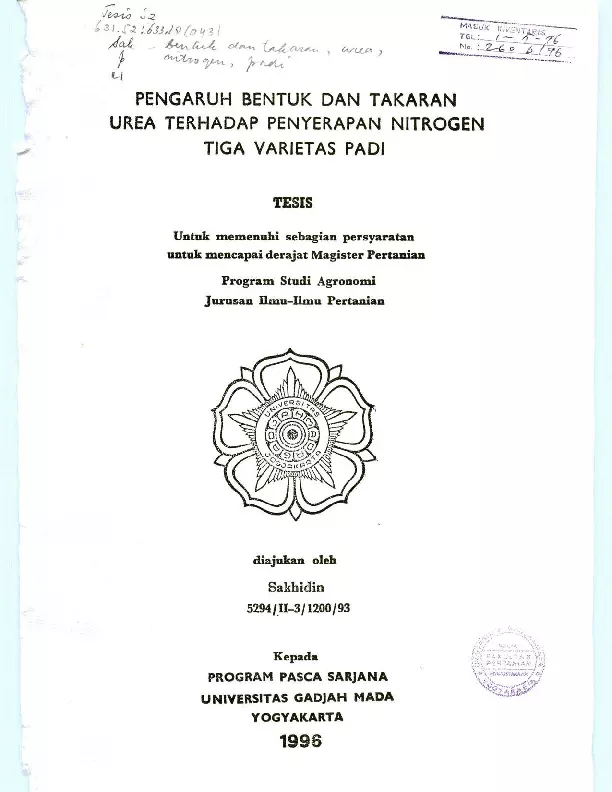 Pengaruh Bentuk Dan Takaran Urea Terhadap Penyerapan Nitrogen Tiga Varietas Padi Sakhidin Fakultas Pertanian UGM Konten Lokal Konten Lokal 31123