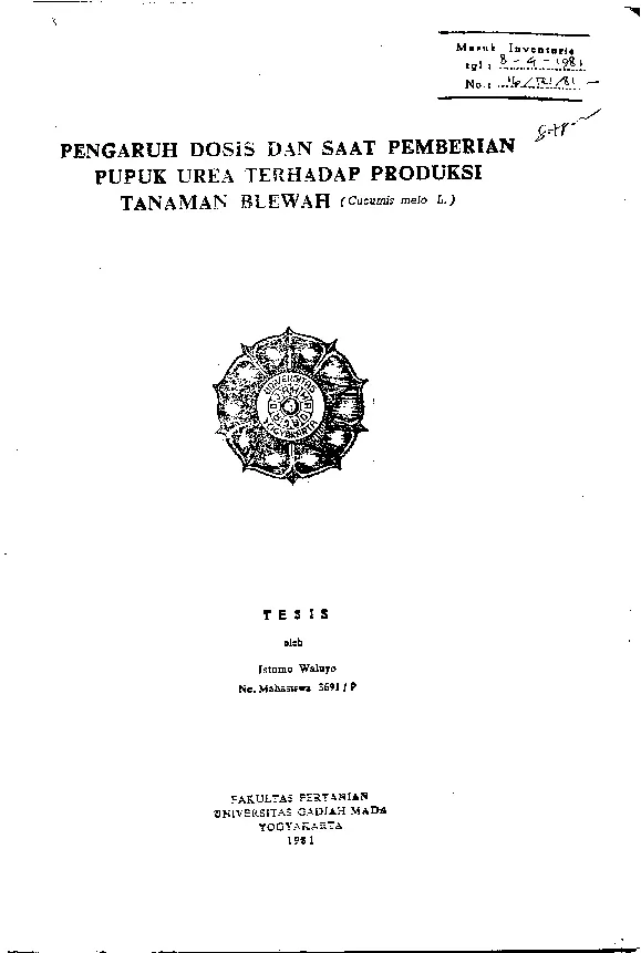 Pengaruh Dosis Dan Saat Pemberian Pupuk Urea Terhadap Produksi Tanaman Blewah (Cucumis Melo L.) Istomo Walayo Fakultas Pertanian UGM Konten Lokal Konten Lokal 31382
