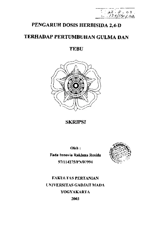 Pengaruh Dosis Herbisida 2,4-D Terhadap Pertumbuhan Gulma Dan Tebu Fada Innovia Rakhma Rosida Fakultas Pertanian UGM Konten Lokal Konten Lokal 48493