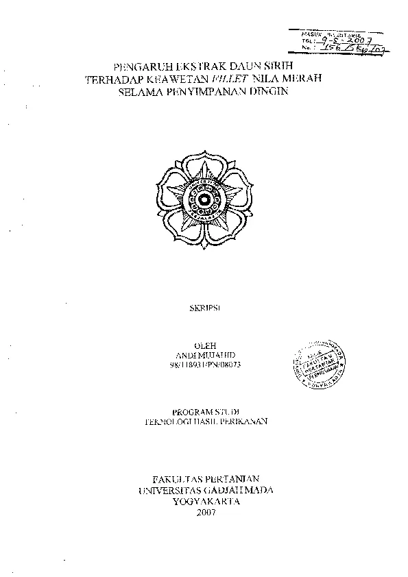 Pengaruh Ekstrak Daun Sirih Terhadap Keawetan Fillet Nila Merah Selama Penyimpanan Dingin Andi Mujahid Fakultas Pertanian UGM Konten Lokal Konten Lokal 48912