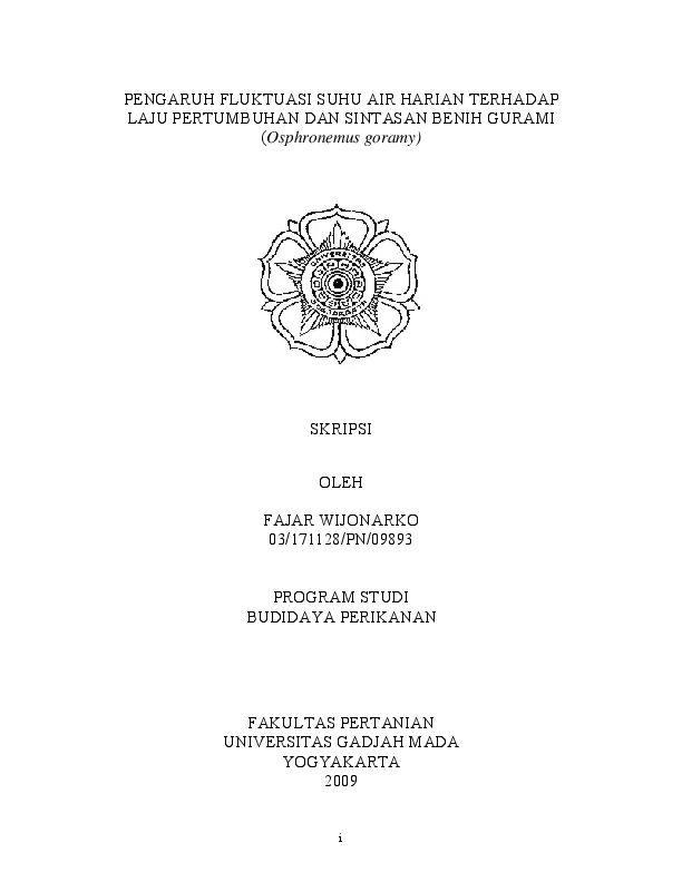 Pengaruh Fluktuasi Suhu Air Harian Terhadap Laju Pertumbuhan Dan Sintasan Benih Gurami (Osphronemus Goramy) Fajar Wijonarko Fakultas Pertanian UGM Konten Lokal Konten Lokal 31212
