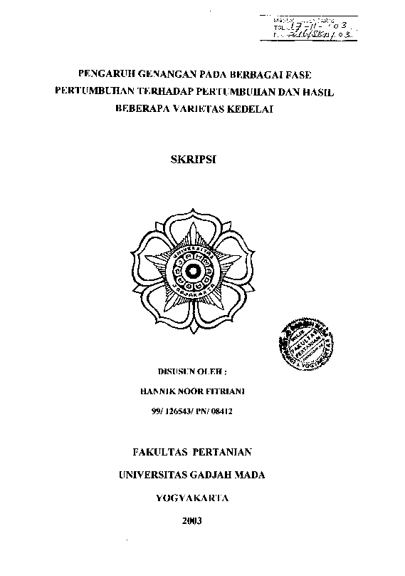 Pengaruh Genangan Pada Berbagai Fase Pertumbuhan Terhadap Pertumbuhan Dan Hasil Beberapa Varietas Kedelai Hannik Noor Fitriani Fakultas Pertanian UGM Konten Lokal Konten Lokal 48477