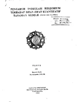 Pengaruh Inokulasi Rhizobium Tehadap Sifat-Sifat Kuantitatif Tanaman Kedele (Glycine Max (L) Merr.) Hananto Hadhi Fakultas Pertanian UGM Konten Lokal Konten Lokal 30999