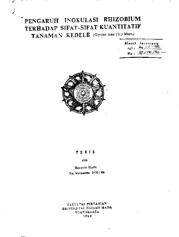 Pengaruh Inokulasi Rhizobium Terhadap Sifat-Sifat Kuantitatif Tanaman Kedele (Glycine Max (L.) Merr.) Hananto Hadhi Fakultas Pertanian UGM Konten Lokal Konten Lokal 31346