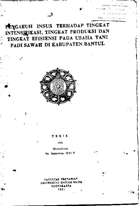 Pengaruh Insus Terhadap Tingkat Intensifikasi, Tingkat Produksi Dan Tingkat Efisiensi Pada Usaha Tani Pada Sawah Di Kabupaten Bantul Martadinata Fakultas Pertanian UGM Konten Lokal Konten Lokal 31067