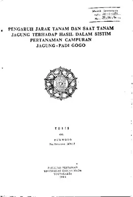 Pengaruh Jarak Tanam Dan Saat Tanam Jaglng Terhadap Hasil Dalam Sistim Pertanaman Campuran Jagung-Padi Gogo Furwoto Fakultas Pertanian UGM Konten Lokal Konten Lokal 31343
