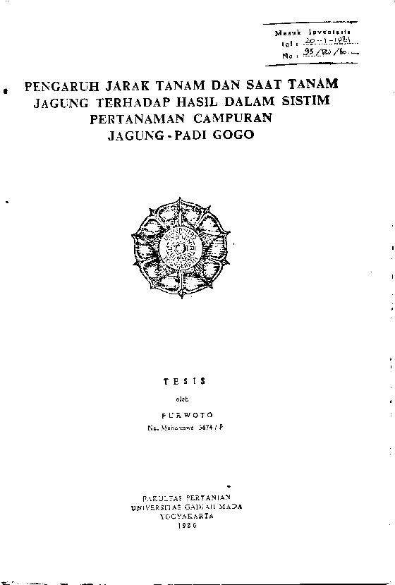 Pengaruh Jarak Tanam Dan Saat Tanam Jagung Terhadap Hasil Dalam Sistim Pertanaman Campuran Jagung-Padi Gogo Purwoto Fakultas Pertanian UGM Konten Lokal Konten Lokal 30970